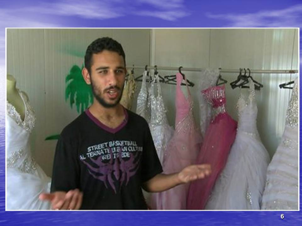 2. Atef, wedding dress magnate: “The door of a metal cargo container creaks open to reveal a row of embroidered and bejewelled dresses in red, pink and white. I had stepped into Atef’s wedding dress hire shop, a business that serves as a reminder that romance blossoms in the bleakest of environments. Atef’s business in is the Zaatari refugee camp in Jordan, home to about 120,000 people who have fled the conflict in Syria. His container is located on a street that aid workers have nicknamed the Champs Elysees, due to the hundreds of shops and businesses. Atef has been in the camp for over a year now. He fled the fighting in Daraa, about 30km (20 miles) away in Syria. It is a city rich with businessmen thanks to a long history of cross-border trade with Jordan. “We started this as an abaya (robe for women) shop,” says Atef. “Women used to come here and say they had weddings but they couldn’t find dresses. So we bought two dresses for rent and it worked out well. “We have two weddings a day and there are people who come from outside the camp to rent dresses because it is cheaper here. “The profit is not that much but we are doing ok. We rent the dress for 10 dinars (around $14) whether it’s people inside or outside the camp. “Sometimes we even take 5 dinars from people who can’t afford to pay much.”