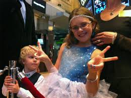 Nine-year-old Vivienne Harr, shown above in the blue “Princess” dress, was chosen by Twitter as one of three key Twitter users to ring the bell at the opening of the New York Stock Exchange, after Twitter launched its path-breaking initial public offering of stock (IPO).