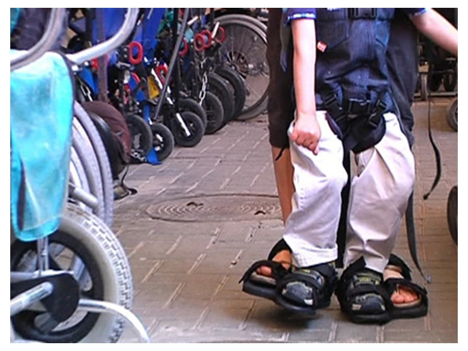 Ooopsie is simply a set of sandals for mother or father and for the child, fastened together. Ultra simple! Among its many advantages: disabled children get to interact with other children at eye level.