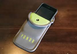 “According to a new policy, students are given special pouches to keep their phones in all day. Barrett checks each one. Principal Hillary Hienton explains the gray fabric pouches, designed by a company called Yondr, magnetically lock. Students unlock them at a magnet station at the end of the day. (see Photo above).