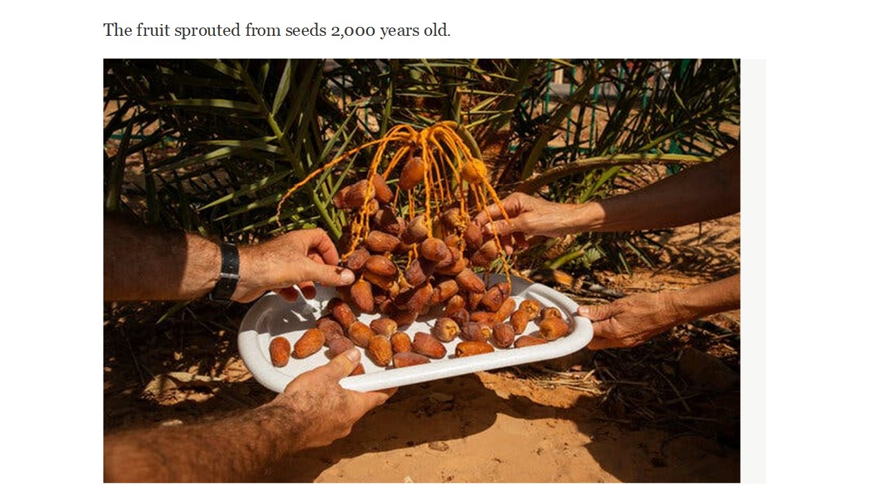 And for the world — when the pandemic has made human civilization seem fragile, bumbling, and in great danger, we learn from the 2,000 year old dates how durable, adaptable and resilient Nature is, in its quest to endure and to prevail. And, as a footnote, how scientists can also prevail in quixotic quests that literally bear fruit.