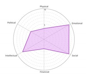So to do this, try Seelig’s riskometer. Draw a circle. Place on the circumference, six ‘realms”, or types of risk (financial, intellectual, social, political, emotional, physical. On the spoke, mark the place where your risk appetite resides…’high’, close to the circumference, ‘low’, close to the center.