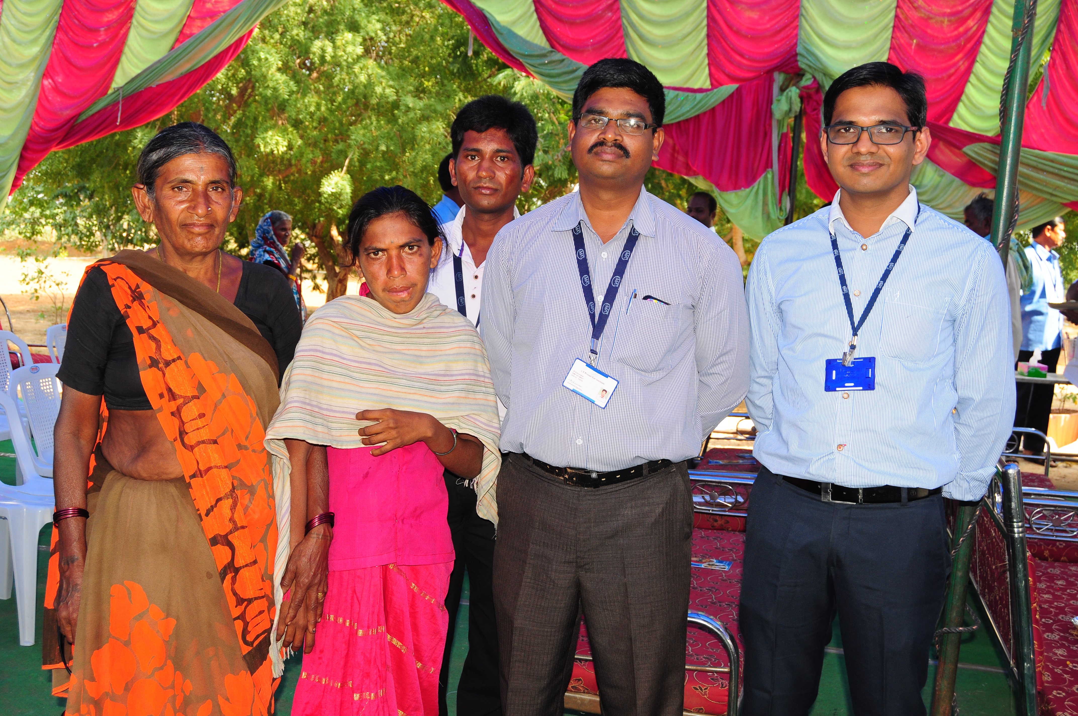 From left to right: N. Ankalamma,(mother of Chennamma), Chennamma (patient), Mr Thirumla Kondalu & Mr Karunakar (Community Based Field Staff who counselled her at her home) and Dr Nilesh Jaiswal (Ophthalmologist who performed the surgeries at the secondary centre).